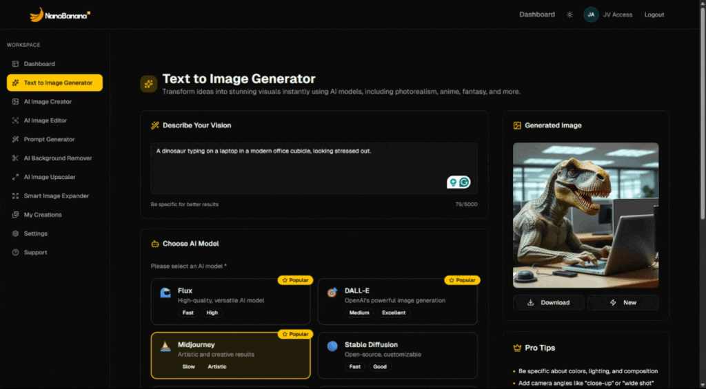 NanoBanana AI is the revolutionary cloud-based app that puts the power of top AI image models—like Google’s Gemini Flash, MidJourney, and DALL-E—right at your fingertips, from one simple dashboard.